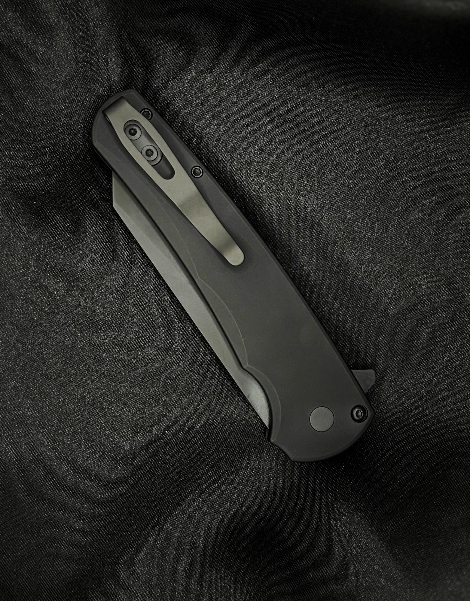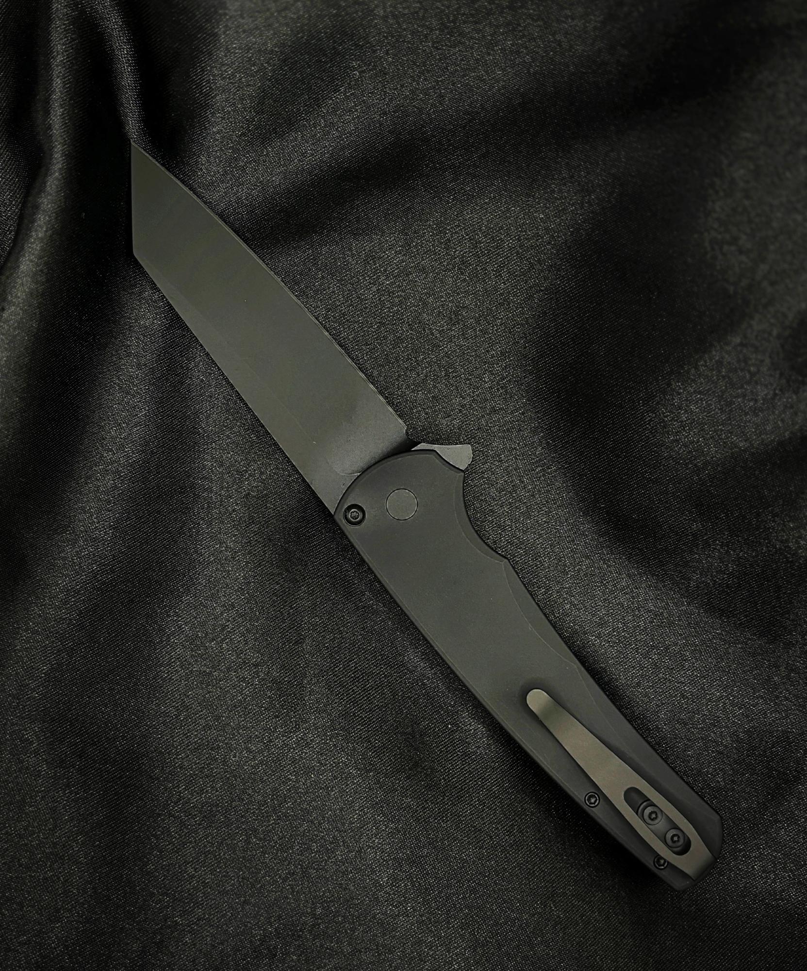 - Blade: Reverse tanto blade with a black DLC finish made from CPM MagnaCut steel.
