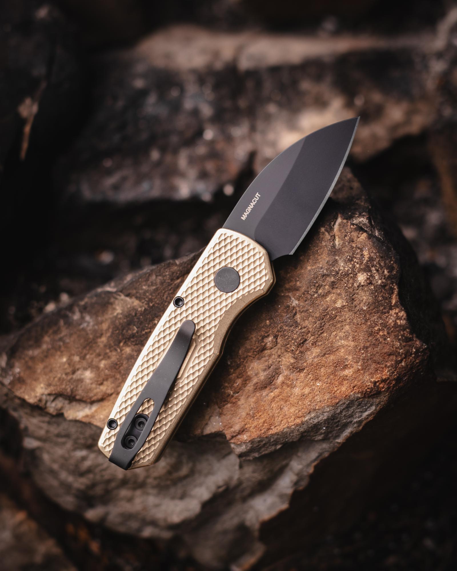 • Wharncliffe blade made of MagnaCut steel with a DLC black finish.