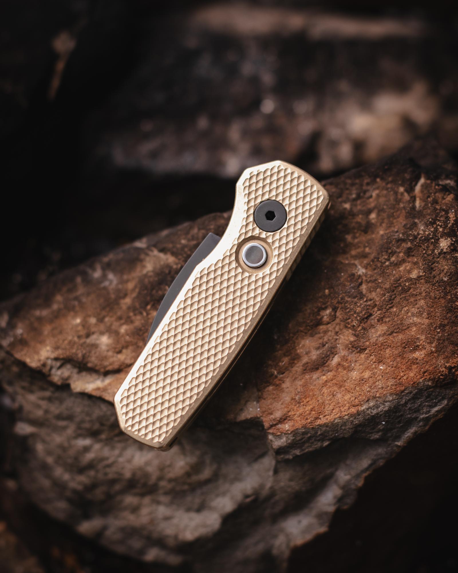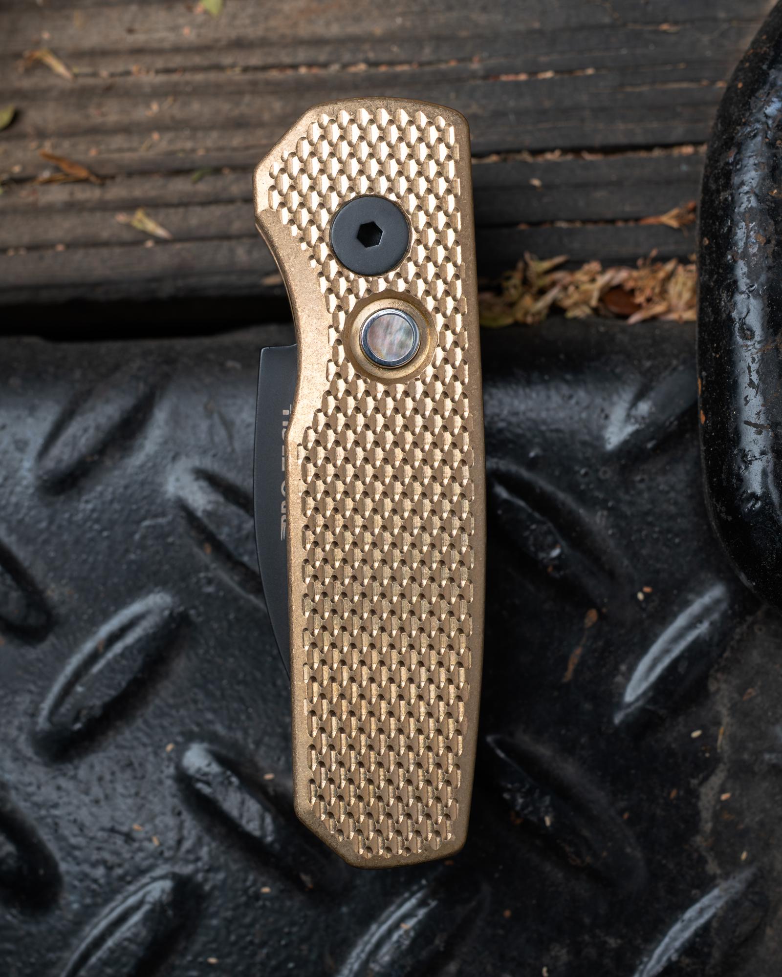 Pro-Tech Runt 5 Wharncliffe Knife Textured Bronze Aluminum (1.9 inches DLC Black)