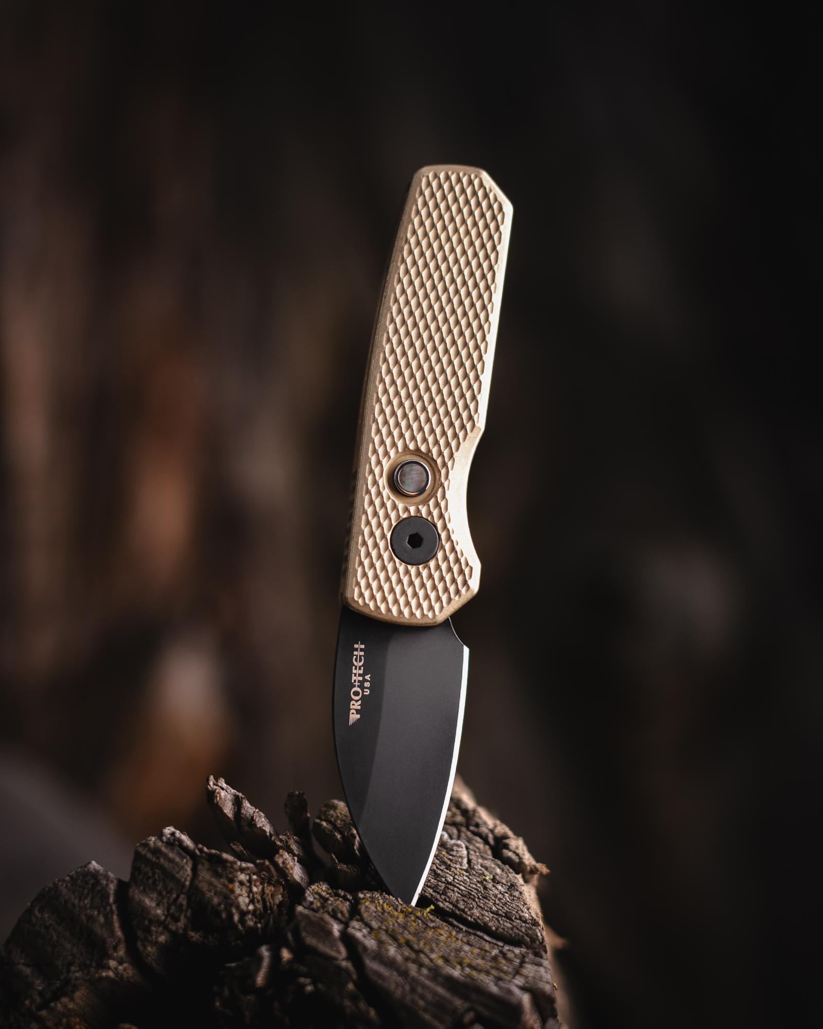 Pro-Tech Runt 5 Wharncliffe Knife Textured Bronze Aluminum (1.9 inches DLC Black) California Legal