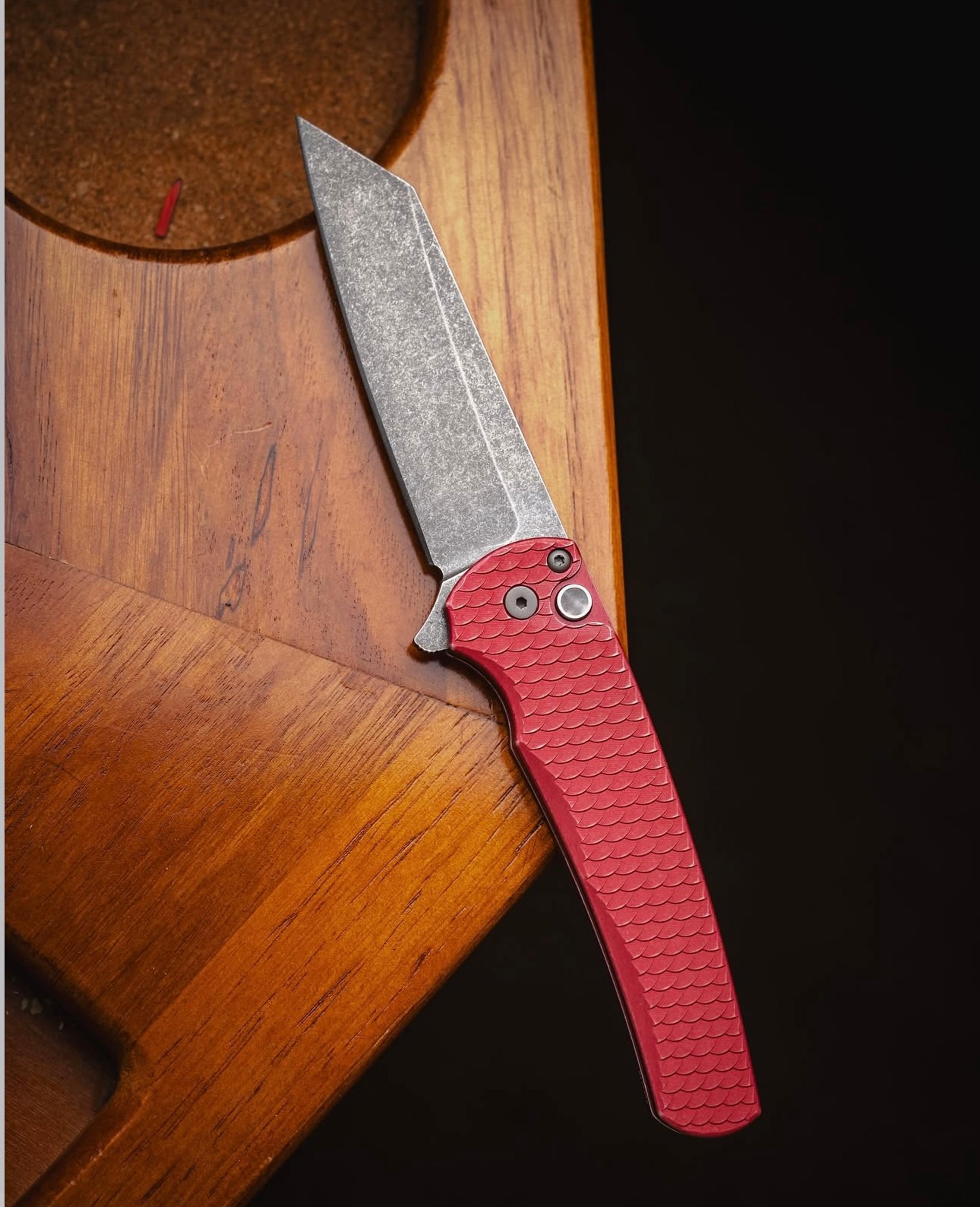 Pro-Tech Malibu Fliiper Red Dragon Scale Reverse Tanto Blade Show 2025